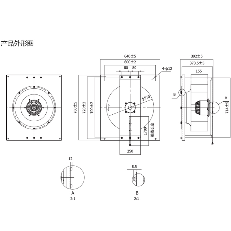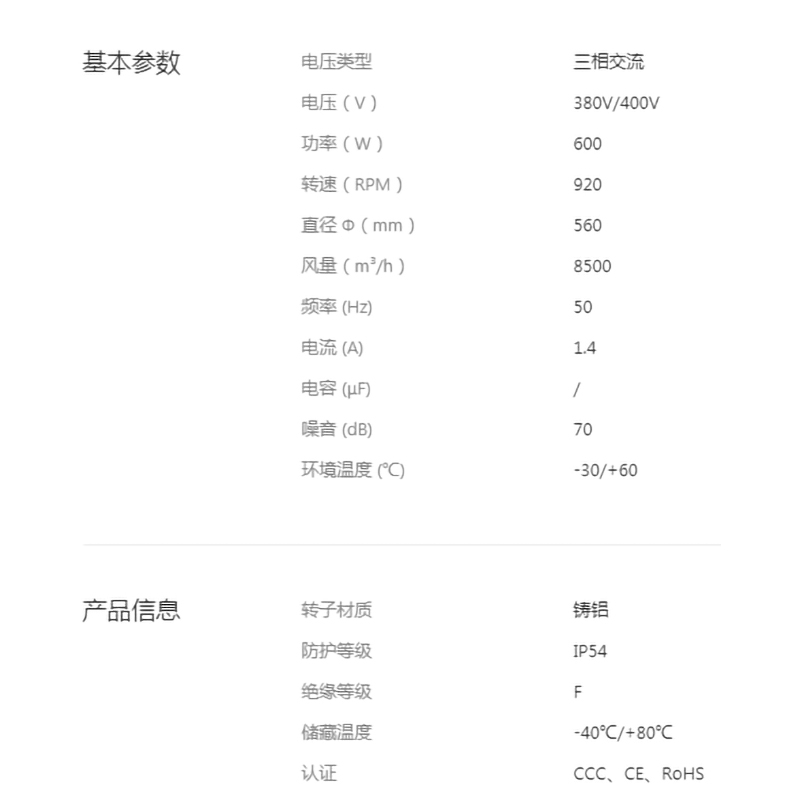 YWF.B6T-560-243AA20全新560系列后傾離心風機低噪音大