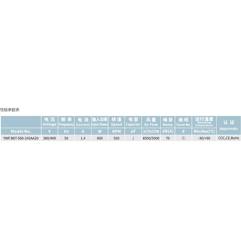 • YWF.B6T-560-243AB20全新560系列后傾離心風機5000CFM風量
